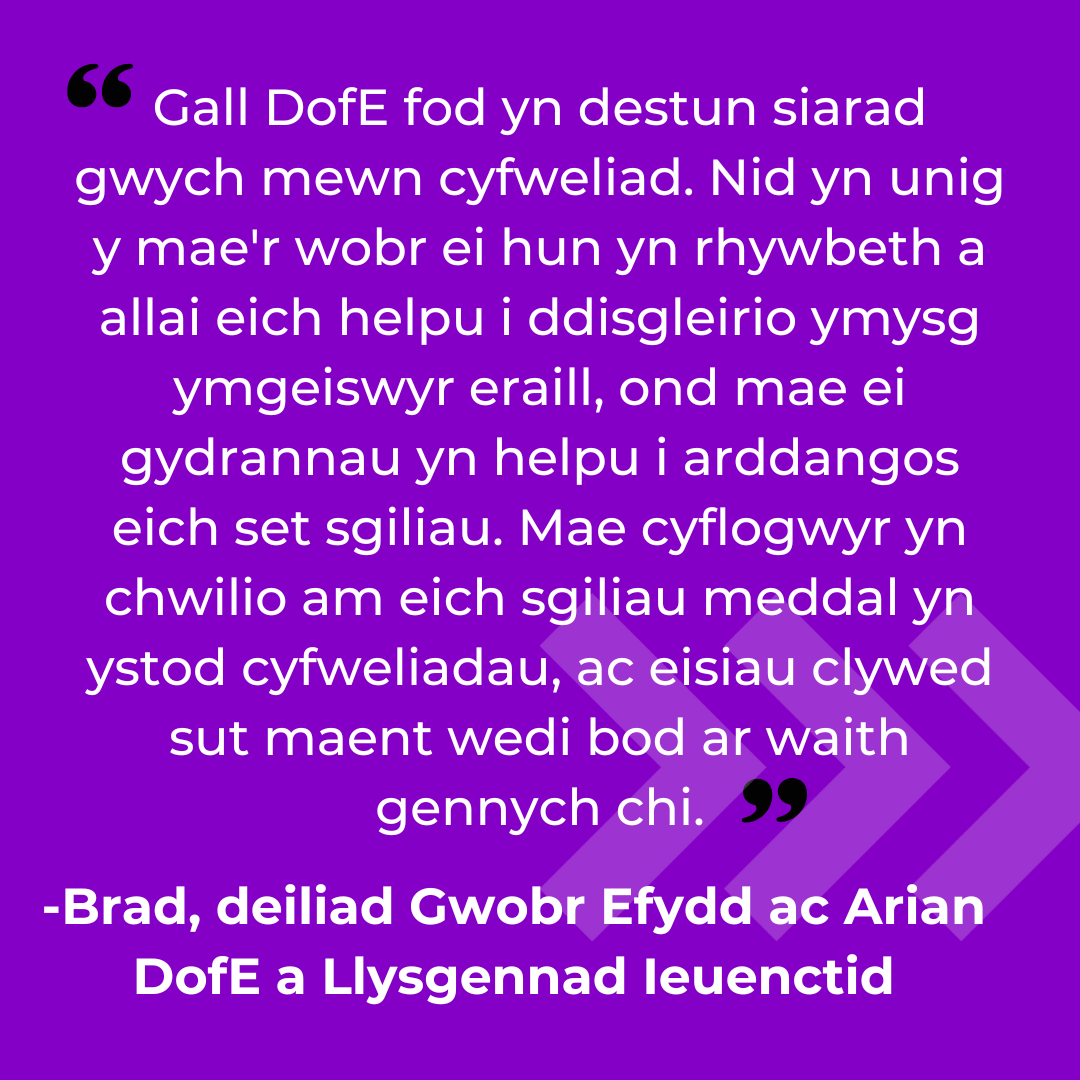Ein nod yw helpu ein pobl ifanc i baratoi mor dda ag y gallant ar gyfer y byd gwaith, gan ddangos hefyd sut y mae DofE yn helpu pobl ifanc i ddysgu’r sgiliau bywyd sy’n angenrheidiol i lwyddo yn y gweithle.